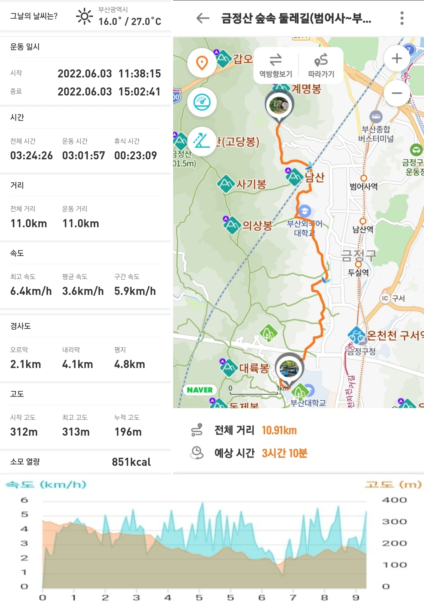 3구간 : 부산대학교~금강공원,